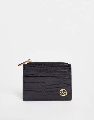 Asos Design Cancer Zodiac Star Sign Cardholder And Wallet In Black Croc Asos